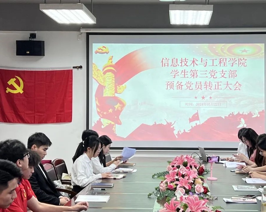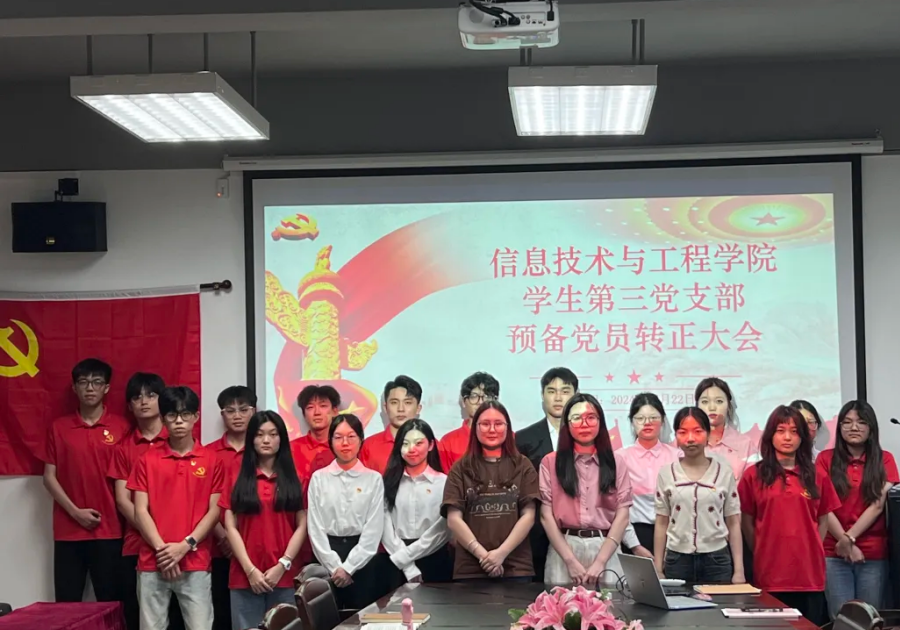 5月22日下午,太阳成集团tyc33455学生第三党支部在第六教学楼205会议室召开预备党员转正大会。参与本次会议的有支部书记朱国华、教师党员陈钰纯、胡舒娅以及全体学生党员,本次会议由严伟怡主持。