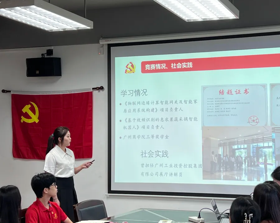 入党介绍人朱国华、陈钰纯和胡舒娅分别从工作情况、思想状况和理论学习三个方面介绍严伟怡等6名同志在预备期的表现情况,一致认为严伟怡等6名同志符合一名共产党员的标准,同意其严伟怡等6名同志按期转正。