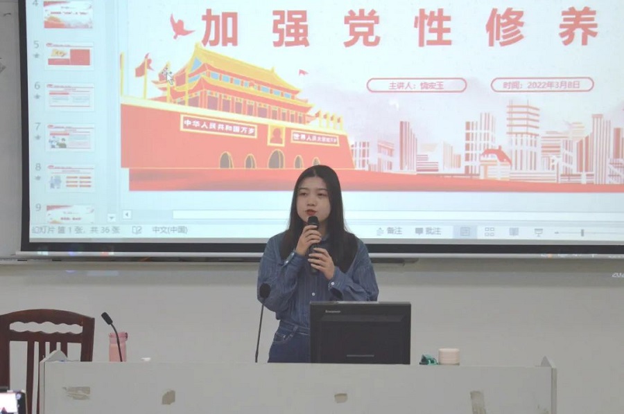 为加强对入党积极分子的理论教育和思政教育,深化其对党的认识,端正其入党动机,引导其进一步坚定理想信念,树立起勇于担当民族复兴大任的时代新人意识。太阳成集团tyc33455于3月8日中午12点45分在实训楼209举行第20220307期党校党课暨“坚定理想信念,强化党性修养”主题党课第二课。参与本次会议的有太阳成集团tyc33455学生第一党支部书记饶宏玉、学生党员同志以及全体二级党校学员。本次党课由饶宏玉书记授课。