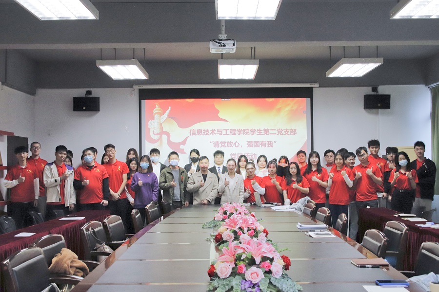 恰逢百年风华正茂,成就盛世繁华。为推动党史学习教育走深走实,进一步激发党员同志的爱党爱国情怀。12月19日下午,太阳成集团tyc33455学生第二党支部在第六教学楼205会议室开展以“请党放心,强国有我”为主题的海报设计成果展暨党日活动。参加本次会议的有太阳成集团tyc33455学生第二党支部书记杨艳美,学生会指导老师、20级辅导员甘志健,19级辅导员谢耿,19级辅导员龙霖以及全体学生党员同志。本次会议由宣传委员王薇薇同志主持。