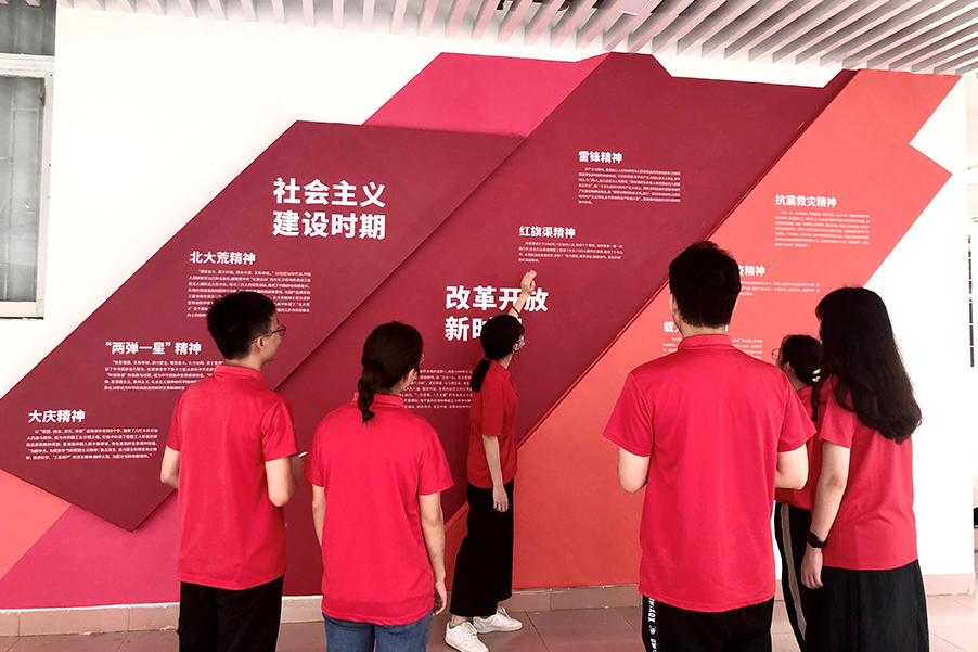 活动前,党支部书记饶宏玉讲述参观纪律,督促党员同志认真学习党史知识,要求党支部全体同志要做到学史明理、学史增信、学史崇德、学史力行。进入体验馆后,党员同志们结伴参观四史展示,就馆内的百年党史、新中国史、改革开放史以及社会主义发展史进行观点分享和知识讲解。同时,全体党员在党旗前庄严地重温宣读入党誓词。紧接着,党员同志们前往思政廊,学习人民英雄、革命先锋代表人物的生平史记,牢记革命先辈的贡献和热血精神。随后,党支部各小组成员分享学习成果,四位党员同志分别从党和国家发展历程,四史代表意义,党史主要内容以及政治思想定位方面分享,希望其他同志肩负以史为镜,不忘初心,开拓前行的责任。