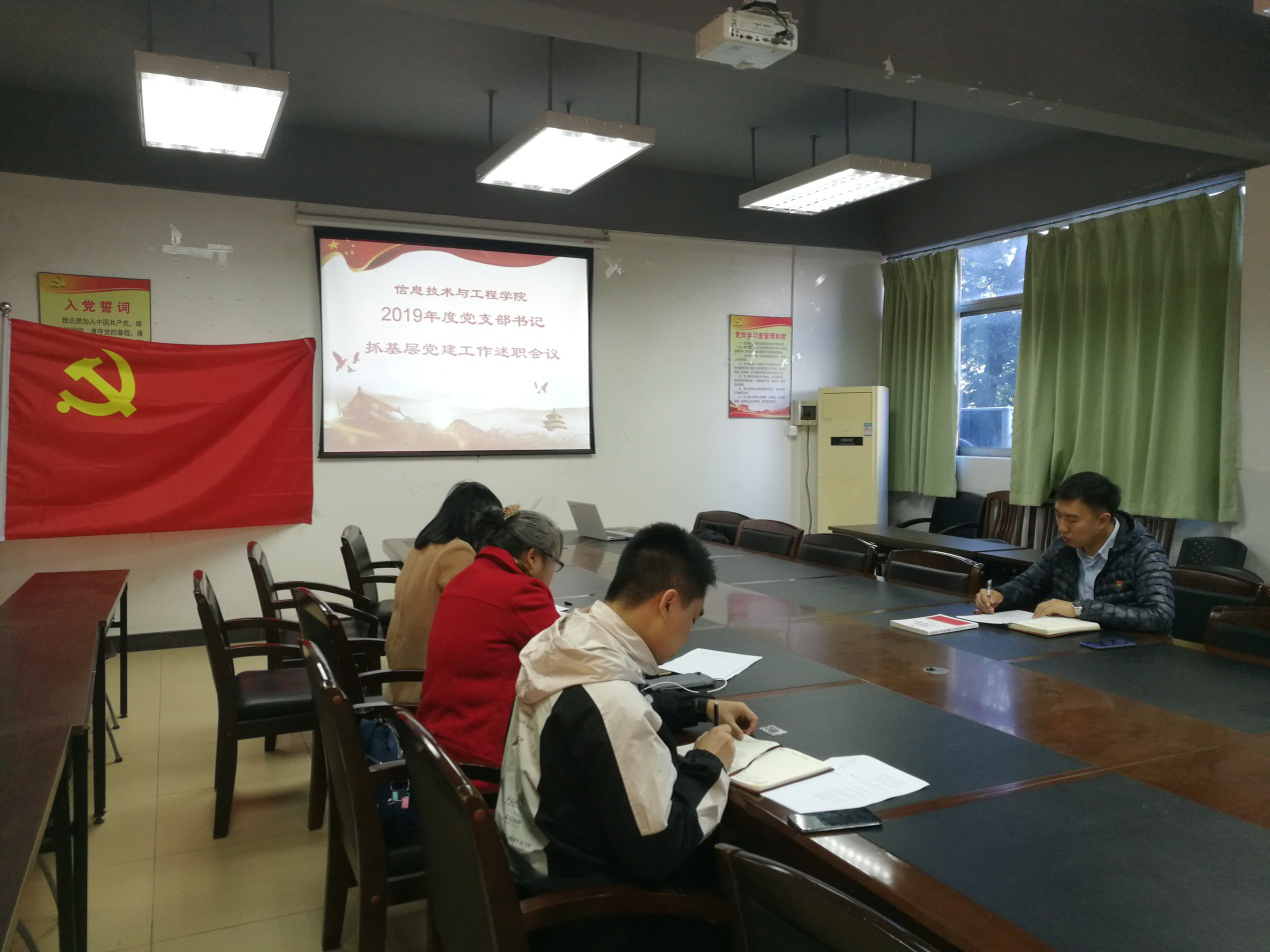 太阳成集团tyc33455于近日在第六教学楼205会议室进行了2019年度基层党支部书记抓党建述职暨党员干部培训会议。参加此次会议的有学院党总支书记关俊明、教工党支部书记李蓉、2016级学生党支部书记陈素婷、2017(含2018、2019)级学生党支部书记郑开勋。此次会议由关俊明主持。