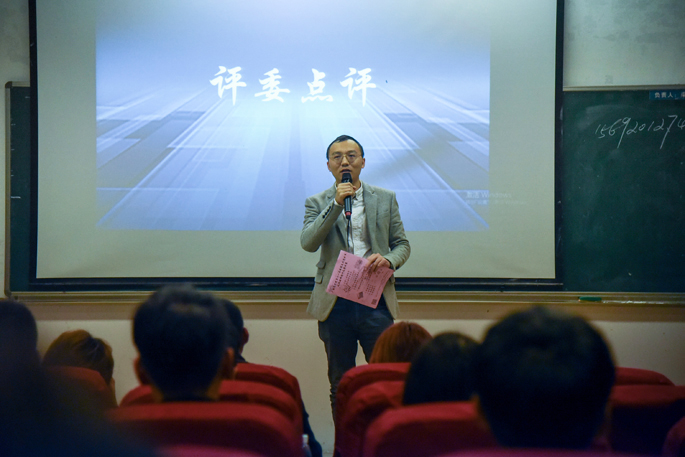 作品全部展示完后,周明华老师上台对所有作品逐一剖析,给出了比较专业的点评。周老师在点评中说到,本次的参赛作品都十分优秀,微电影的拍摄手法新颖,对于镜头切换、背景音乐和景别的运用都十分恰当;而电子海报作品的题材独特,色彩丰富而又和谐,明暗关系也能灵活处理,拥有不错的视觉效果。周老师还表示新媒体创作应该回归初心,注重视听上的享受,少用花俏的技巧,尽量做得生活化。最后,在激动人心的颁奖环节中,林俊杰书记等嘉宾为电子海报设计大赛和微电影创作大赛的获奖选手颁奖。颁奖的结束,也预示着此次的新媒体创作大赛落下帷幕。