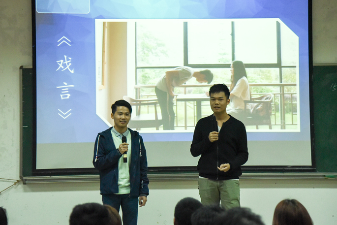 活动伊始,便直接进入到微电影和电子海报的参赛作品展示环节。在微电影参赛作品展示时,选手首先为观众们播放自己精心制作的微电影,播放完毕后再上台为观众们解说作品。选手们的微电影围绕着比赛主题取材于生活,但却各有特色,有的作品温馨感人;有的富含道理,耐人寻味;还有的幽默风趣,给观众们带来了欢乐。在电子海报比赛环节中,一共有三组作品,其都围绕着“低碳环保”、“青春筑梦”的主题创作而成。选手们仅用小小的一幅海报就给观众展示出了自己所想表达的理念,传播正能量,展示出了其制作海报技术水平之高超和对主题的深入理解。