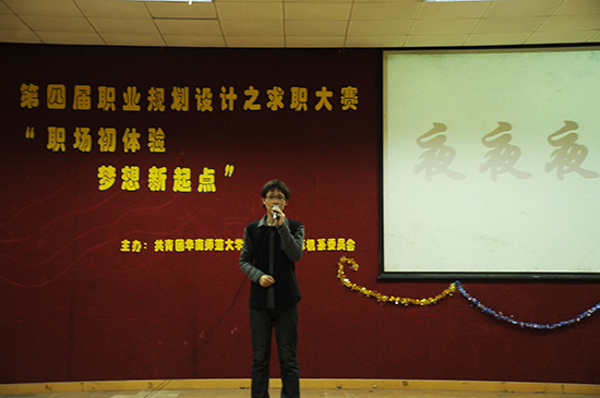 2014年3月16日晚上7时30分,我系在教学楼A206开展以“职场初体验,梦想新起点”为主题的第四届大学生职业规划设计大赛之求职大赛决赛。届时,出席本次比赛的嘉宾有:学院团委秘书长杨佳雪师姐,学院团委网络团支部书记黎汉章师兄,经济系团委副书记罗林浩师兄,计算机系学生会主席陈梓君师兄,计算机系团委副书记刘安东师兄以及各兄弟系代表。