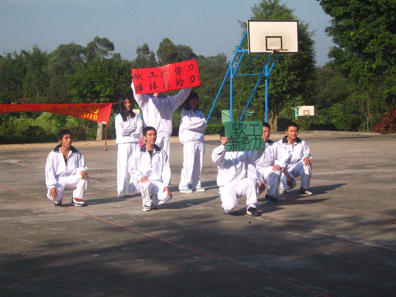 各队运动员怀着坚定的信心,踏着轻快的脚步,带着必胜的决心,在同学们的欢呼声中风风火火地进场了。下午三点整,紧张的比赛终于开始了。第一个环节——争分夺秒热身操。在这个环节中,各团支部男运动员们纷纷show出他们过人的体质,引来了同学们阵阵的惊呼声。经过一番热身,更大的挑战向他们徐步走来:齐心协力抬棍子、定点投篮接力赛、超级无敌猜猜猜以及踢足球。主办方精心设置的每一个环节无不考验着他们的团队合作能力,只要他们能够齐心协力,能够将八条心拧成一条绳,要想顺利完成任务绝对不是难事。经过一下午的比拼,各支队伍的表现都出色,同时都取得了不错的成绩。拉拉队们也是铆足了劲的给他们支持的队伍加油鼓劲。篮球场上洋溢着同学们呐喊加油声,不时还传来他们欢乐的笑声,俨然就是一片欢乐的海洋。