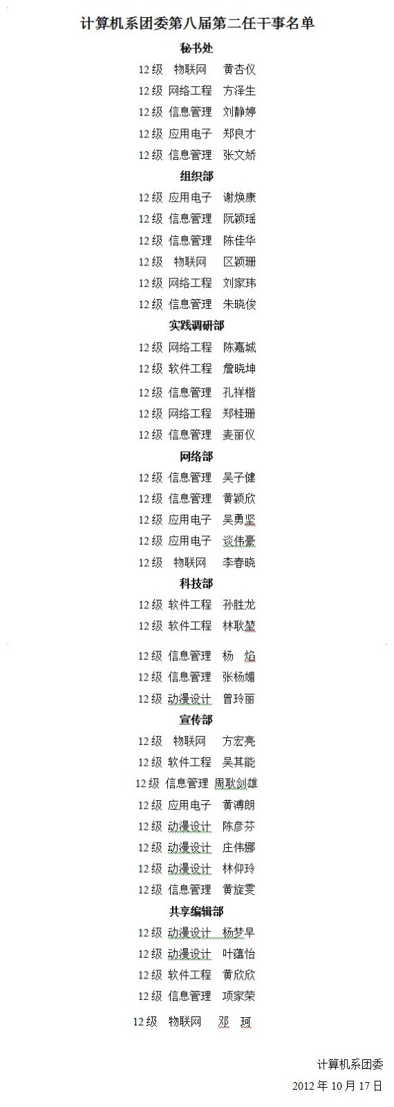 计算机系团委第八届第二任干事名单