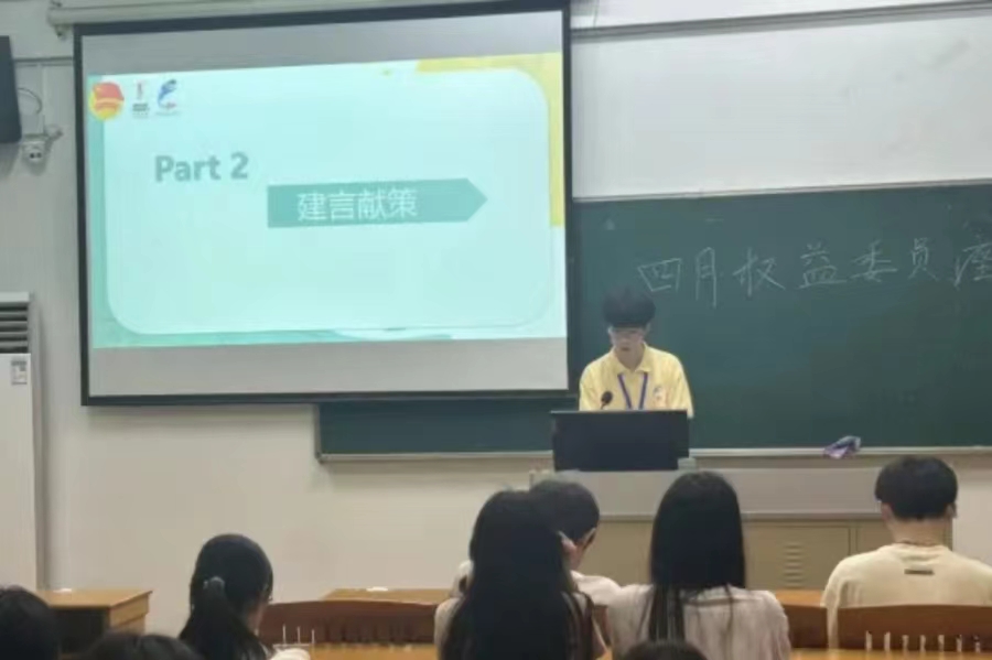 此外,王祥清还对“5.25”心理健康月系列活动和“寓”见美好,“宿”说文明——宿舍评比活动进行了详细介绍,便于权益委员们更好地了解活动情况,及时向同学们传达活动细节。