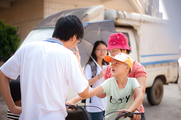 在支教组成员整装待发完毕后,便在桃源村开始下乡招生的工作,旨在让村里的家长、小孩知道服务队在桃源小学开班上课。一路上,队员们欢声笑语,以百倍的热情投入到工作中,把青春、欢笑带入到桃源村的每家每户。路上的村民们看见志愿者们都绽放了热情的笑容,对志愿者们不辞辛劳的到来表示赞赏。一些小孩更是纷纷拉上自己的小伙伴,给志愿者们的开班宣传工作提供了极大的帮助。
