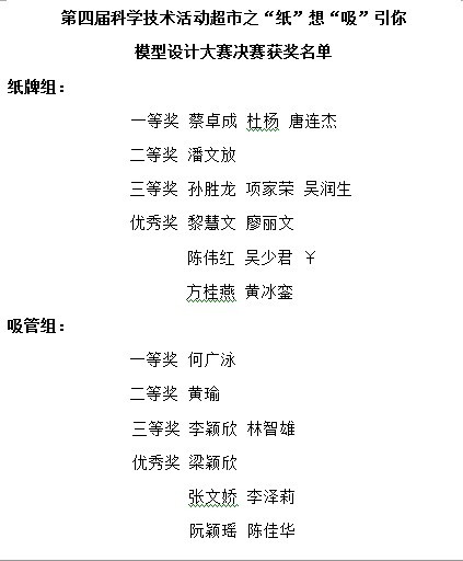 第四届科学技术活动超市之“纸”想“吸”引你模型设计大赛决赛获奖名单