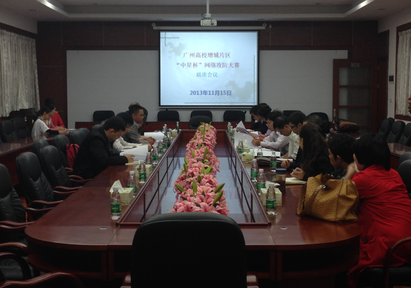 2013年11月15日下午,广州高校增城片区“中星杯”网络攻防大赛联席会议在我院第二行政楼208召开。届时,出席本次会议的嘉宾有:我院刘根正副院长、计算机系陶培基主任、计算机系党总支钟远辉书记、计算机系吴广裕副主任以及增城片区各大高校嘉宾代表和广州中星网络技术有限公司、广州南征公司的嘉宾代表。