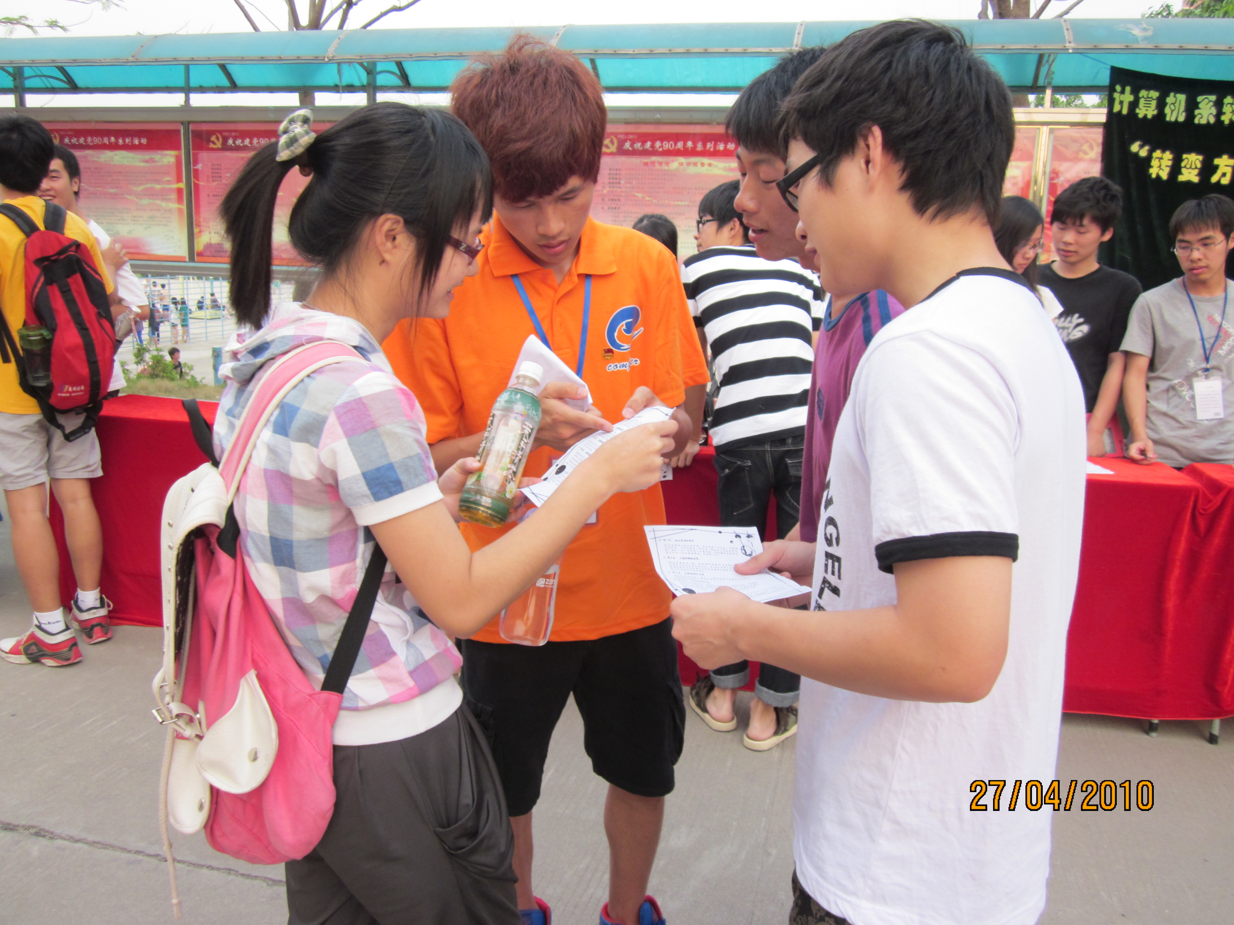 随着时间的流逝,激情四射的团日大赛即将拉开序幕。为了积极响应学院“转变学习方式”的方案,我系团委于4月26日下午在排球场旁对本次团日设计大赛之“忆长征旅途”大型室外活动进行摆摊宣传活动。