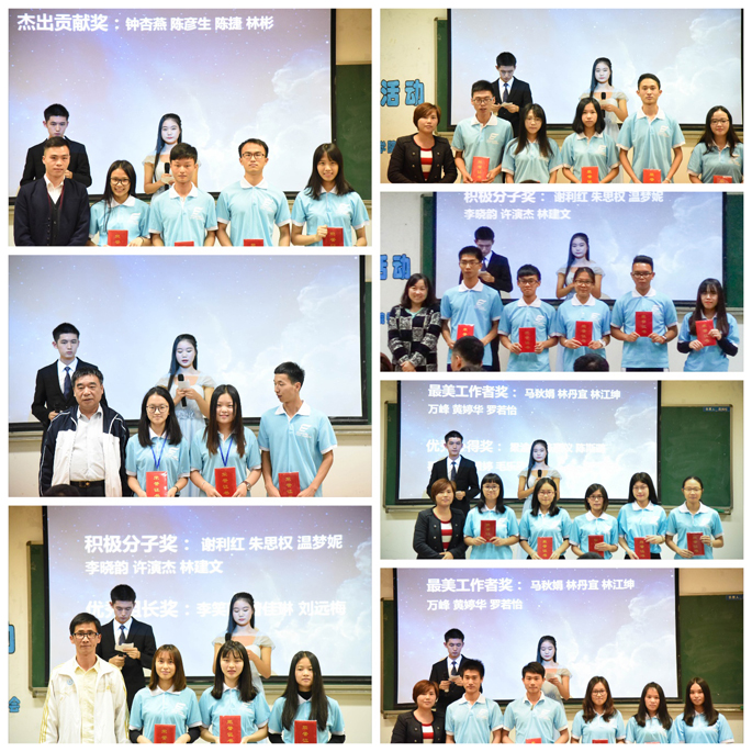 活动开始,观众们通过视频回顾了服务队队员的下乡期间精彩动人瞬间。接着,谭小龙老师上台分享服务队在下乡期间的经验:在学校的领导和支持下,服务队全体队员紧扣主题、精心策划,使三下乡活动顺利完成,促进了自身综合素质的提高、增强了其服务社会的责任感,同时收到了当地学校与村民的赞许与好评。而后,王轻纱老师宣读本次三下乡活动的表彰决定,希望受到表彰的同学再接再厉,在以后工作中更进一步,为广大同学树立榜样,同时其也希望学校领导对社会实践工作给予更大的支持。接着由曾富强老师等嘉宾为获奖的服务队队员颁奖。