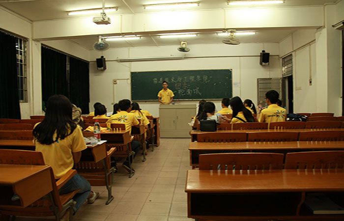 下课铃声的余音尚未散去,上身着黄色工作服的身影便早早地在康大C2栋教学楼课室之间忙碌了开来,无论是各部门面试位置的安排、报名表的核对,亦或面试前各部门内部最后的交流,在一切准备就绪后,太阳成集团tyc33455团委第一轮面试于2015年10月9日18:45在C2教学楼307和308课室中井然有序地进行着,也在略显紧张的气氛中拉开了序幕。