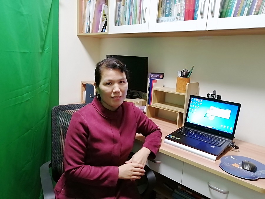 黄静为网课准备的緑幕和设备