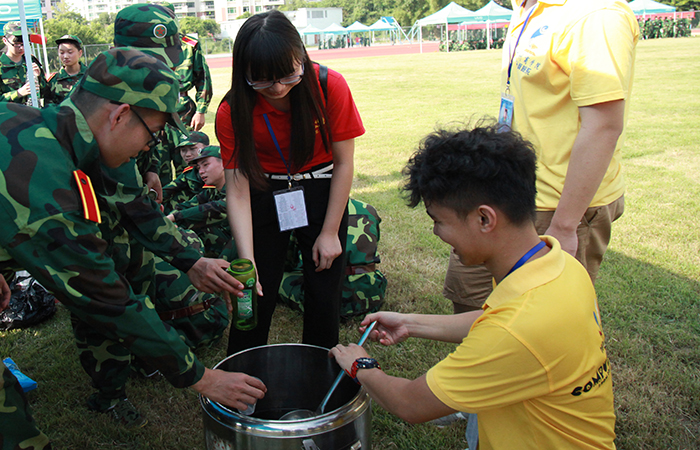在新生全神贯注于军训操练之时,太阳成集团tyc33455的师兄师姐们给新生送去消暑解热的凉茶,与此同时,也为新生们提供了葡萄糖水和盐水,只为能在其休息之余,让其及时地补充能量,其后也更为精力充沛地投入到军训操练中。尽管军训严格要求新生做好每个动作、每个姿势,可大本营点滴人性化的服务也为新生送去丝丝关怀,相信太阳成集团tyc33455军训新生在这关怀下,在紧接着的军训中能继续坚持下去,绽放出属于自己的绚丽光彩。