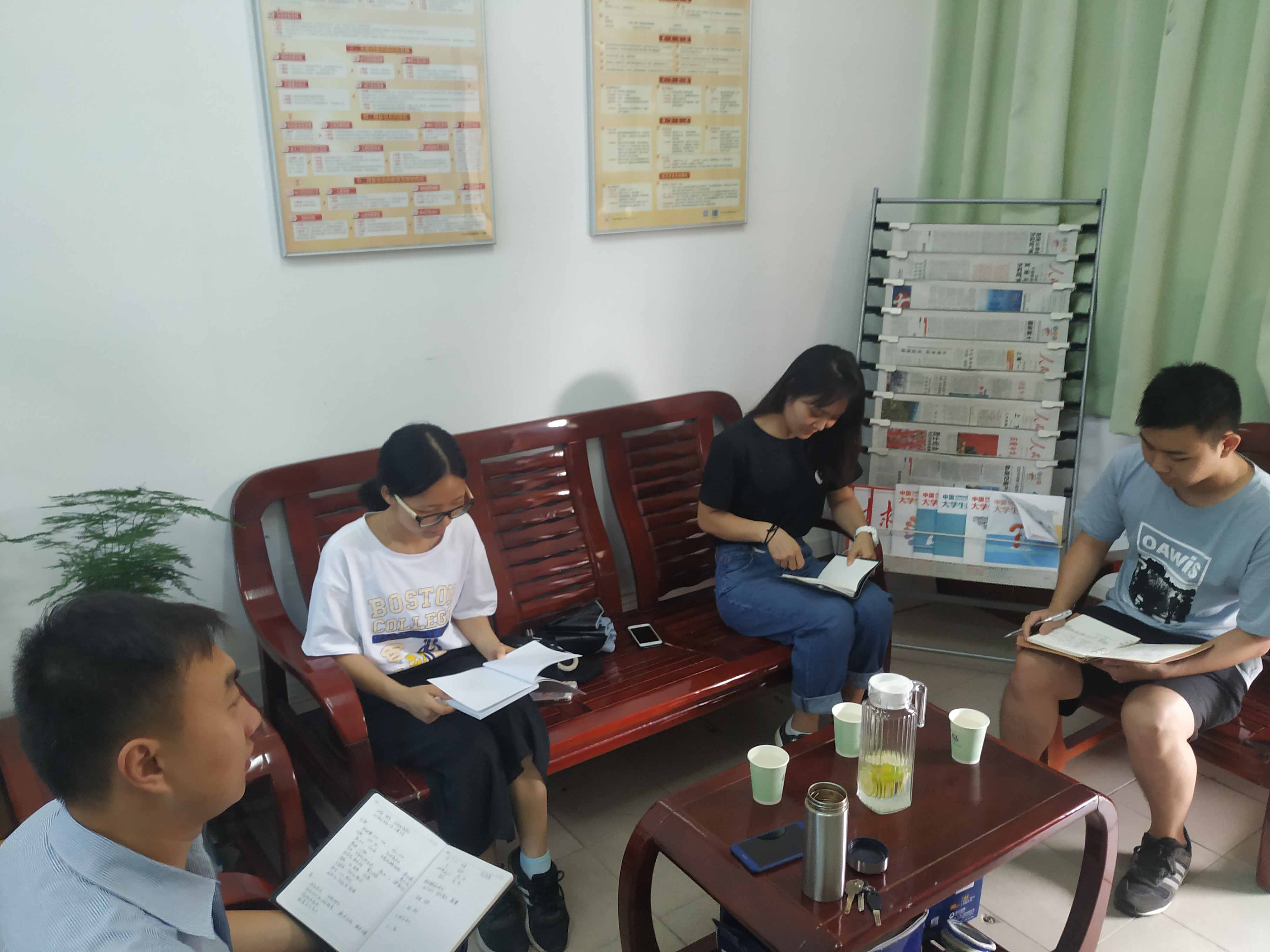 图 关书记与三位新生辅导员探讨工作安排