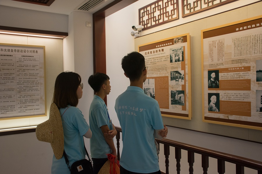 为增强大学生对党的凝聚力和向心力,继承和发扬“五四”精神,更好地传承先烈们的红色精神,“e启逐梦”三下乡服务队于7月19日上午前往位于江门市新会区的梁启超故居,进行参观学习。