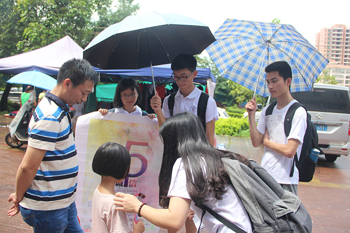为了让英德市英红镇的居民深入“3.15消费者权益维护日”和“预防校园暴力,共建和谐校园”的相关知识,广州商学院“信梦启航”三下乡服务队策划组于2017年7月9日早上8点30分在英德市英红镇为民市场开展了“3.15晚会”和“校园暴力”的普及宣传活动。