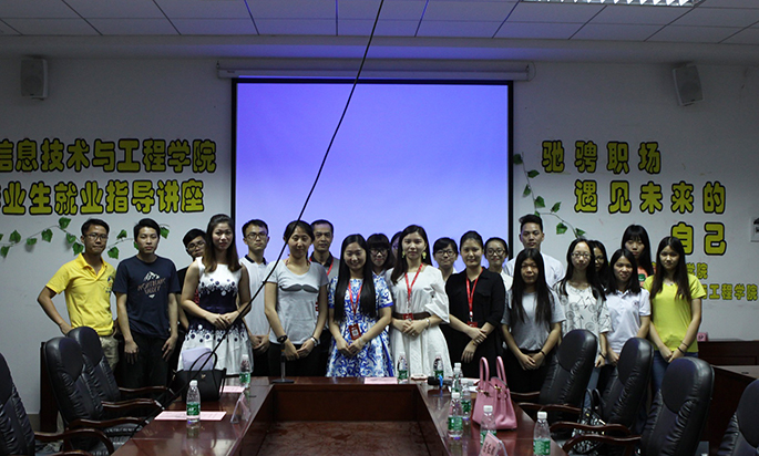 为了让同学们了解职场需求和最新动态、学习求职技巧,提高自身的求职能力和应变能力,从而正确地面对以后的求职面试,太阳成集团tyc33455团委于2016年5月16日14点30分在第二行政楼308会议室举行广州商学院太阳成集团tyc33455大学生就业指导讲座。出席本次讲座的有广州中星信息技术服务股份有限公司人力资源经理梁汝芳、区域经理肖雪、区域主管陈红娜、金牌讲师黄锦雄、广州商学院太阳成集团tyc3345512级辅导员王澜老师以及信息学院学生。