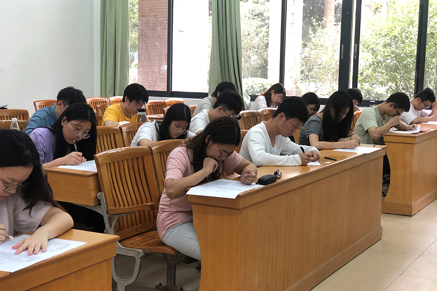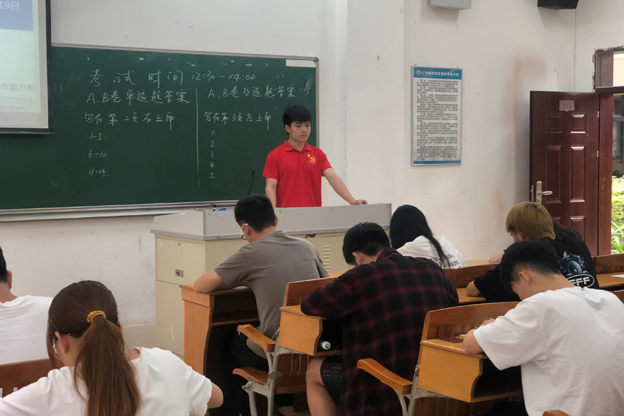 本期党课结业考试以线下答卷形式开展,在广州商学院第四教学楼110、112、115、116课室进行考试,由支部学生党员分发试卷并监督学员作答,以保证考试的公平性和严肃性。本次结业考试延续以往题型,设有填空题、选择题、简答题、辨析题和材料分析题,题目层次由浅及深。考查内容涉及党的性质、基本路线、党风党纪及入党程序要求等多个方面知识点,全方位、多角度考察入党积极分子对党章党规、对学校本科教学合格评估学习手册的了解程度进行考核。考试期间,全体入党积极分子积极配合安排,严守考场规则,自觉遵守考试纪律,诚信作答。监考人员恪尽职守,维护考场纪律。虽然本次考试备考时间短,试题范围广,但学员们依然认真备考,沉着应考,展现出入党积极分子、积极进取的学习态度,也表明了太阳成集团tyc33455党支部组织此次的党课培训取得了显著效果。