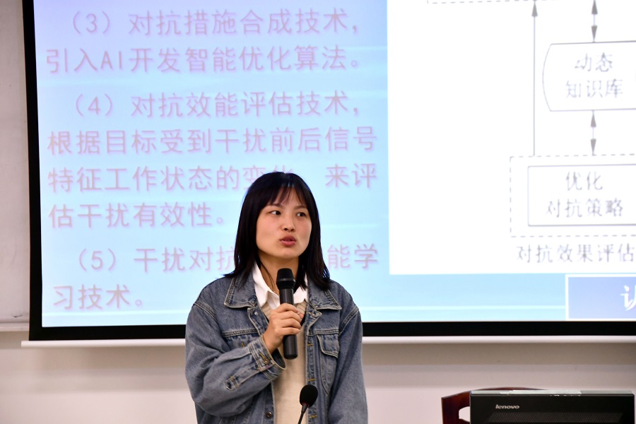 讲座伊始,张欧亚博士首先讲解了电子对抗的概念、分类及发展简史。他讲到,电子对抗也称电子战,主要利用电磁能、定向能及声能等手段,削弱或破坏敌方电子信息设备、系统及相关武器装备和人员的效能;电子对抗主要分为电子侦察、电子进攻、电子防御三大类,是信息作战的主要形式;而信息作战则包括电子战、网络战、心理战等方式,旨在破坏敌方信息和信息系统,并保证己方信息安全和信息系统稳定运行;随后,他向师生们讲解电子侦察与反侦察、电子干扰与反干扰、对电子设备的摧毁与反摧毁三种电子对抗的基本形式,三种基本形式又分为许多具体形式或分类,并列举了许多生动、有趣的电子对抗技术的战例或应用案例。接着,他阐述了电子对抗技术在战争中的重要地位与不可或缺的作用,使师生们对电子对抗技术的重要性和应用价值有了更深入的了解。对于电子对抗技术未来的发展趋势,他表示,电子对抗技术正向不同的领域、频谱和模式拓展;其组成和战法应用趋向综合集成一体化;其所用装备趋于小型化、网络化、认知控制化、多平台化;认知电子战(包括认知无线电、认知雷达)是美军智能化电子战发展的重点。最后,他介绍了美军正研发的认知电子战相关的科研项目及其关键技术。