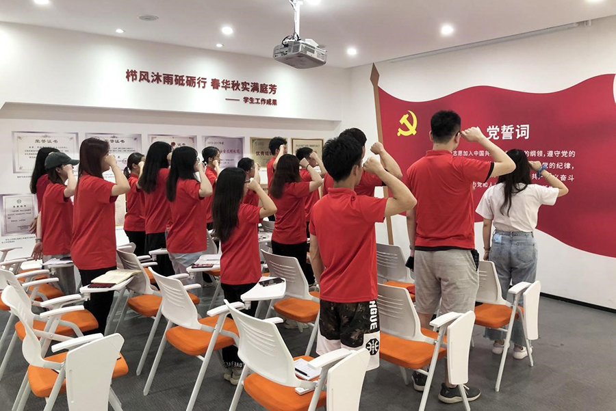 为迎接建党百年华诞,贯彻落实习近平总书记关于全国全省高校思想政治工作会议精神,提高思想政治教育的实效性,普及党史学习教育的重要性,太阳成集团tyc33455学生第一党支部全体党员于4月25日中午在我校青年学生思想政治教育园地“青思苑”四史教育体验馆开展了“学党史 悟思想”为主题的学习参观活动。
