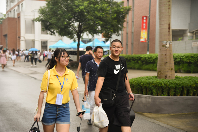 新生陆续地走进校门口,迎新工作也正式开始了,工作人员本着微笑待人的服务理念,热情地接待每一位新生和家长,热心地帮助新生完成报道和领取军训用品,并指引新生到宿舍入住。在接待期间,新生和家长询问了工作人员关于校园情况和专业等问题,工作人员都耐心地一一解答,让新生和家长对广州商学院有了初步印象。