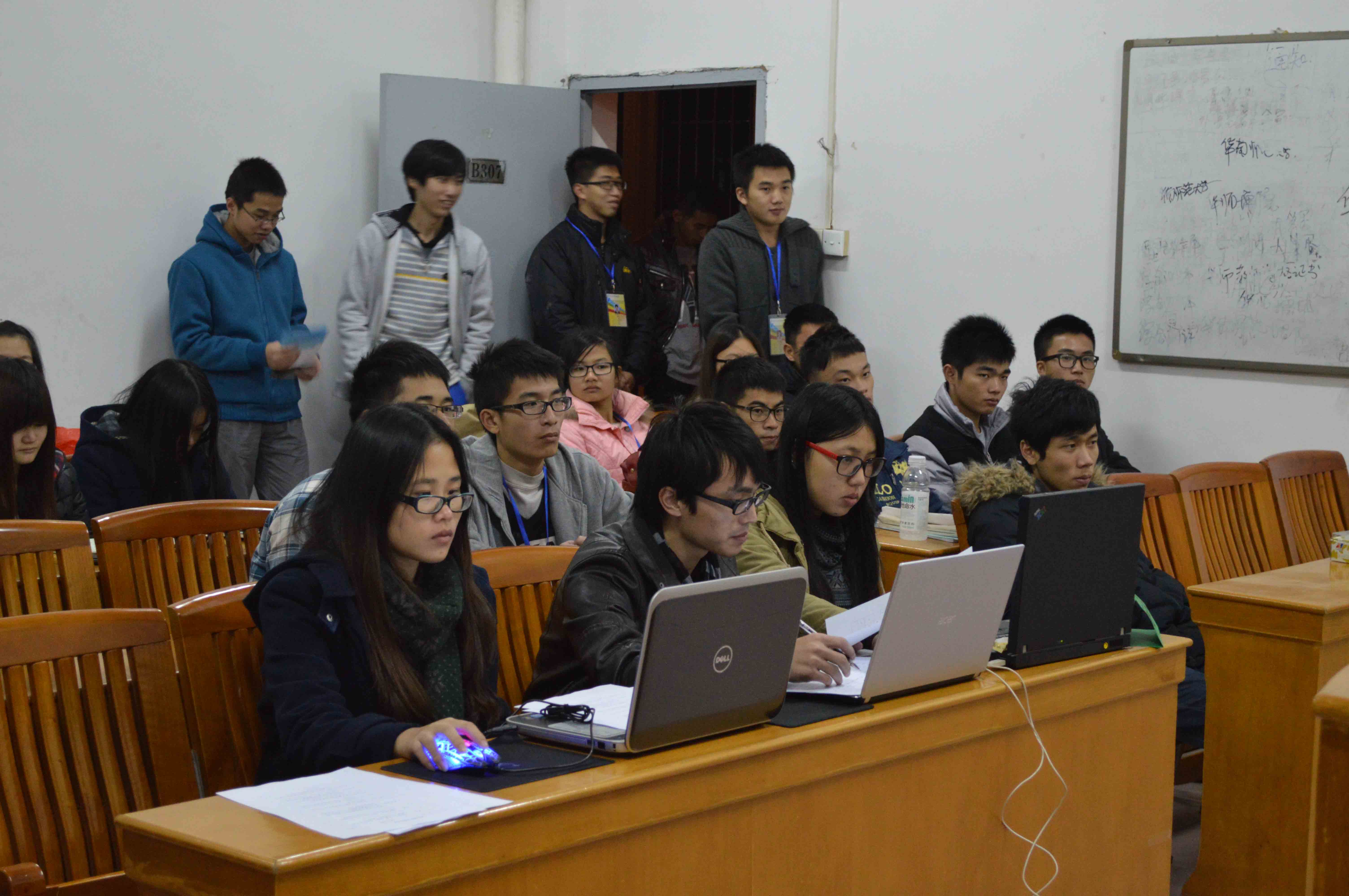为激发广大同学的成才意识,为更多的同学提供一个展示自我的平台,2013年12月18日与19日,由华南师范大学增城学院计算机系团委举办的第四届“职业规划设计大赛”之求职大赛初赛在教学楼B307举行,计算机系团委副书记刘安东、组织部部长高立文、秘书长李玉仪以及网络部副部长李春晓出席本次大赛并担任评委。