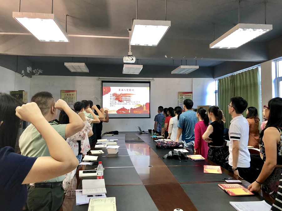 关俊明在会上传达了省委和学校党委关于“不忘初心、牢记使命”主题教育的文件精神和要求,宣读了太阳成集团tyc33455党总支《关于开展“不忘初心、牢记使命”主题教育实施方案》,并对学院主题教育相关工作进行了部署。就主题教育的指导思想、总要求和目标任务进行了详细的指导和解读,带领教工党员学习了习近平总书记在“不忘初心、牢记使命”主题教育工作上的讲话精神。围绕 “守初心、担使命、找差距、抓落实”的总要求,结合岗位实际,建议党员同志应戴党员徽章树榜样亮身份,保持与结对子班级联系,进行针对性的帮扶,为毕业班学生联系实习就业单位等。全体党员围绕“不忘初心、牢记使命”学习体会进行了热烈讨论,张新文分享了党员教师在教育工作中的个人使命,要在工作中贯彻党建引领的作用,不忘初心,立足岗位,要有责任意识和担当精神,服务好学生,对社会尽责。吴广裕表明主题教育不应是阶段性任务,应一直保持下去,为加快学院建设发展做出应有的贡献。会上还进行了“三重”活动:重温入党誓词、重忆入党经历、重问入党初心,引领党员同志不忘初心、坚守初心、践行初心。