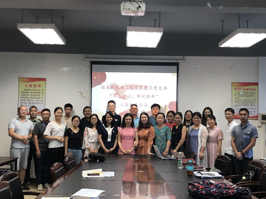 为贯彻落实习近平总书记在“不忘初心、牢记使命”主题教育工作会议上的重要讲话精神,根据上级党委和学校党委文件要求,太阳成集团tyc33455教工党支部于9月26号中午在六教205会议室召开了“不忘初心、牢记使命”主题教育会议。学院党总支书记关俊明以及全院教工党员参加了本次会议,会议由教工党支部书记张新文主持。