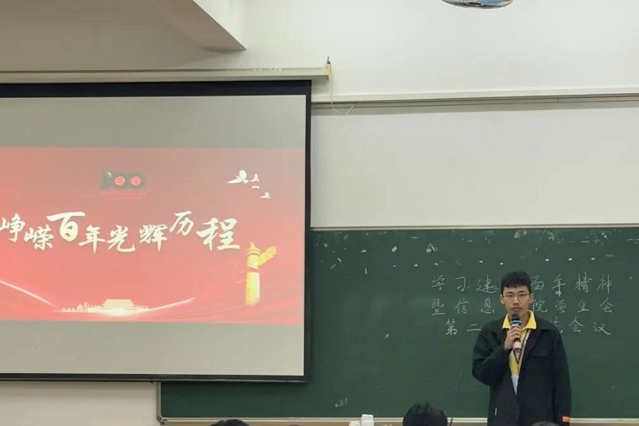 活动伊始,主讲人陈恒宇通过回顾党的一百年奋斗历史,指出不忘中国共产党“为中国人民谋幸福,为中华民族谋复兴”的初心和使命,真正做到“知党、信党、颂党、热爱党、跟党走”,不断唱响“共产党好、社会主义好、改革开放好、伟大祖国好、各族人民好”的时代主旋律。他告诉学生会成员们学习党史的意义以及党的百年光辉历程给我们的深刻启示。希望学生会成员们应端正态度,认真对待,从中找到自己的不足并及时给出解决措施。最后由学生骨干李奕龙和植伟洁分享关于总书记伟大建党精神及马克思列宁主义的精髓。他们鼓励学生会成员们砥砺前行,在未来继续以高标准高质量完成学习教育各项目标任务。学好专业知识,着手眼下,共同进步,为自己,为信院赢得更多掌声。
