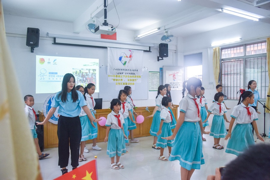 不知不觉中,暑期三下乡社会实践活动转瞬即逝,短短十天,队员们和同学们都经历了许多,也得到了成长,这十天以来,支教组笔耕不辍;统筹组为了大家的饮食起居奔走效劳,凭着医者仁心的大爱精神对生病的队员嘘寒问暖;信息组更是不顾大汗淋漓,在烈日下仍走街串巷,争取获得第一手资料。为了给这十天交上一份完美的答卷,让这十天的辛劳完美收官,太阳成集团tyc33455“e启逐梦”三下乡服务队于下午三时在多媒体教室举办以“青春乡伴,与你童行”为主题的文艺汇演,参与本次活动的嘉宾有罗坑小学主任陈均宝、林明采,服务队指导老师郑开勋、罗坑小学的家长学生与服务队所有队员。