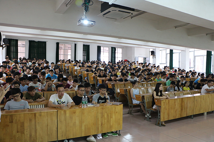 精彩短片过后便是由14级级长杨威和辅导员对于本次大会的致辞,黄玉婷老师指出,每位学生都要了解自己、科学管理学习和娱乐、对自身的行为能够自省自律、清晰规划自己的发展目标,懂得学会尊重;邻近期末,要抓紧复习,要大家一起营建诚信考试的氛围。