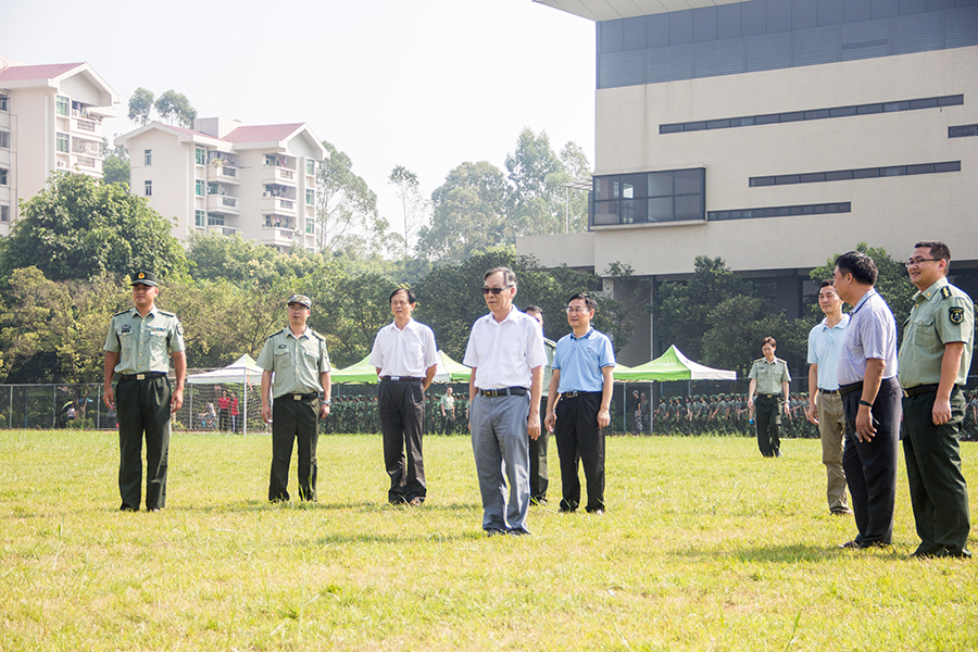 升旗仪式结束后,新生们又投入了紧张的训练中。经历了这次升旗仪式,新生们对待训练任务更为认真,很快队列等相对以往有了大幅度提高,整齐划一,气势非凡。期间校长杨文轩、校党委书记吕泉荣、学生处处长何柏略、校团委书记李锦堂等学校领导在信息学院院长姜灵敏、学院党总支书记林俊杰、新生辅导员王轻纱的陪同下参观了我院新生的训练,姜院长向杨校长简要介绍了我院新生军训训练情况,并感谢学校对学院工作的大力支持。杨校长对信息学院的军训工作做出了充分的肯定,希望信息学院继续保持强劲的势头,争取做到最好。随后杨校长慰问正在训练的新生,鼓励他们在军训期间磨练意志,强健体魄;在今后的学习中好好学习,全面地提高自身素质,用自己的智慧、才学和技术为实现中华民族伟大复兴做出应有的贡献。