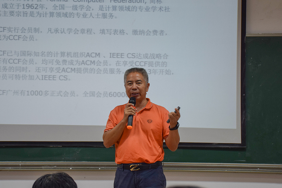 会议伊始,臧根林向大家介绍了“中国计算机学会”。“中国计算机学会”是全国一级学会,是计算领域的专业学术社团,其主要宗旨是为计算领域的专业人士服务。他希望并鼓励学生能奋发图强,在计算机领域深造,并且将来能入会,学习更多知识!随后,臧根林结合自身经历,为大家讲解从事IT行业的所需要的不同知识,例如物联网、云计算、大数据、5G、区块链等不同专业知识及就职需求。最后,臧根林还教导学生要主动了解大环境,观察社会发展趋势,并告诉大家要有正向思维,同时也要注重情商培养,才能在未来职业生涯中有所成就。