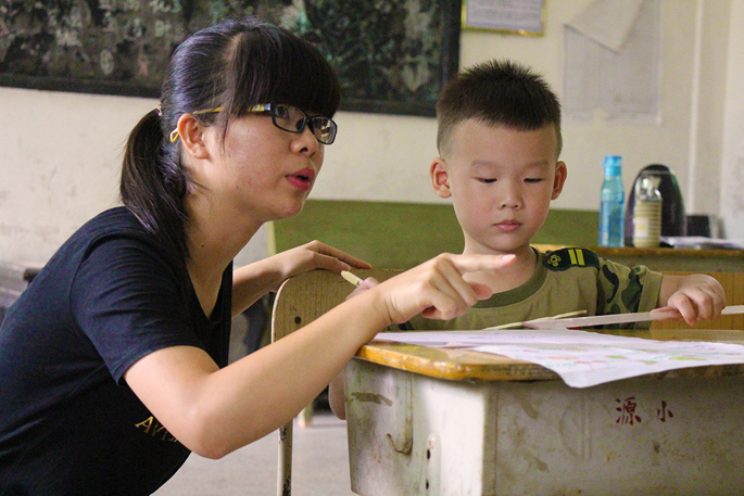 上午8点30分整,孩子们开始认真地上课,与昨日相比,小朋友们越发开朗了,主动地跟支教老师交流叙说自己身上发生的事情,说到有趣的地方时,还手舞足蹈地把当时的情景演示一遍给小老师看,把小老师们逗乐了。这时的小老师和孩子们俨然已经融为一体了。