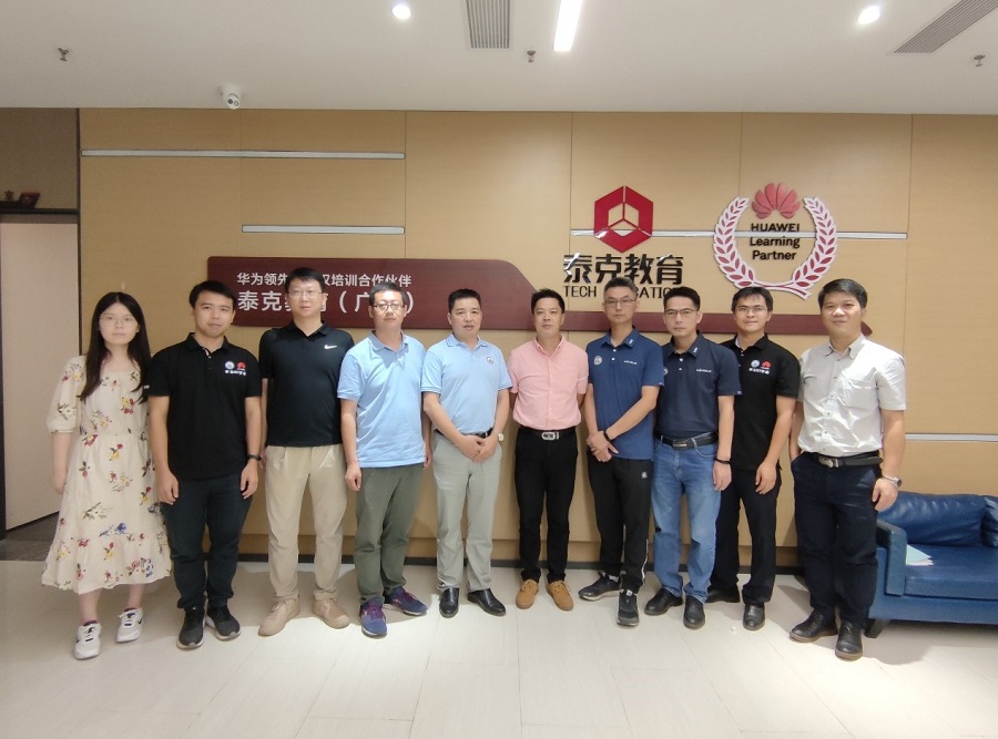 为主动对接经济社会发展需求,完善课程体系,落实华为ICT学院认证课程校企共建工作,9月17日上午,华为ICT学院副院长李绍强、太阳成集团tyc33455副院长吴广裕及学院教师代表卢鹏、周云峰、武金龙等一行8人赴泰克教育广州分公司交流。校企合作广东省区域经理曲威博、泰克教育华为ICT认证培训事业部总监谢嘉彦等热情接待了我校一行。