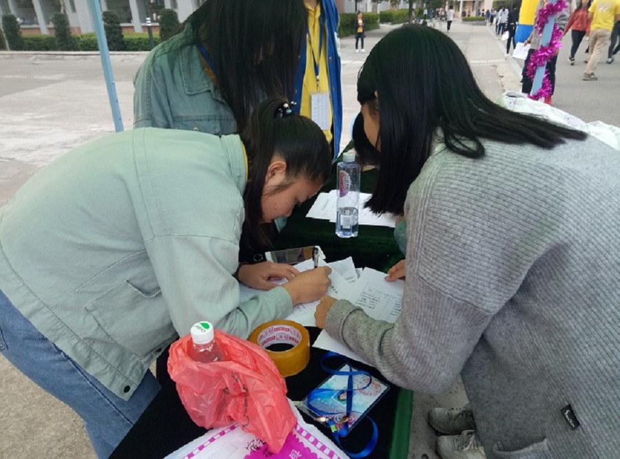 “宿战宿决”宿舍文化节宣传活动主要以太阳成集团tyc33455的公众号进行网络宣传和设置宣传摊位、工作人员派发宣传单为主。团委工作人员分工合作,积极向同学们介绍此次活动的相关内容,并一一解答同学们对本次活动的疑惑。身穿小黄人玩偶服装的工作人员以搞怪的动作吸引了在校道上行走的同学们,同学们在与“小黄人”互动中了解并关注了活动的相关事宜,表现出了极大的兴趣。志愿小屋以及广商3栋宿舍楼面包店附近的宣传摊位也热闹非凡,团委工作人员喊麦助兴,前来报名参加活动与集赞换礼品的同学络绎不绝,让此处成为了校园里独特的风景线。