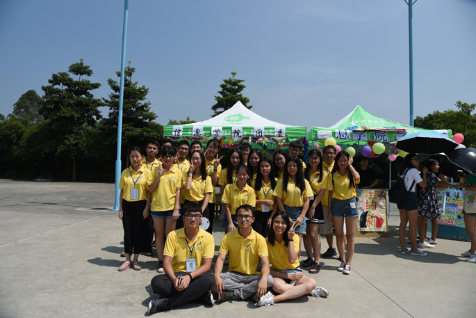烈日当空,篮球场上人来人往,各个摊位工作人员各尽其能,招揽着新生同学们前去摊位了解社团组织。信息学院团委学生会也不甘示弱,一大群小黄人一齐呼喊:“信息学院团学欢迎你”,这样引起了来往同学的注意,即使不是信息学院的学生,也向小黄人招手问好;而信息学院新生听到宣传,也闻声而来,前来摊位了解。工作人员积极地向前来询问的新生介绍团委和学生会的部门工作职能以及特色活动,小黄人的热情接待使信院新生感到宾至如归,对团学有兴趣的同学也填写了报名表。