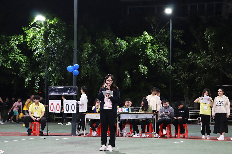 黄丹琪为篮球揭幕赛致辞,指出“走下网络,走出宿舍,走向球场”是“三走”活动的主题,希望大家发扬友谊第一、比赛第二的体育精神。