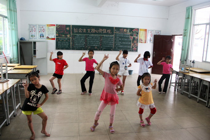 随着小老师和小朋友们的相互认识、彼此了解,教学工作也逐渐步入了正轨。其中,手工班进行了主题为“学会欣赏”的班会,在融入小朋友的群体的同时,逐步摸索小朋友们的兴趣爱好,尽最大的可能增加小朋友们的所学所得。绘画班的小朋友们在老师的引领下,在自己原有的绘画爱好上进一步开阔了眼界,学会更多种多样的绘画手法。音乐班以《童年》为第一首教学歌曲,小朋友以积极的态度、烂漫的笑容跟着小老师们的音调走;舞蹈班的教学任务以歌曲串烧伴舞为主,历时两个多小时,完成了青春舞曲第一部分的动作要领教学。