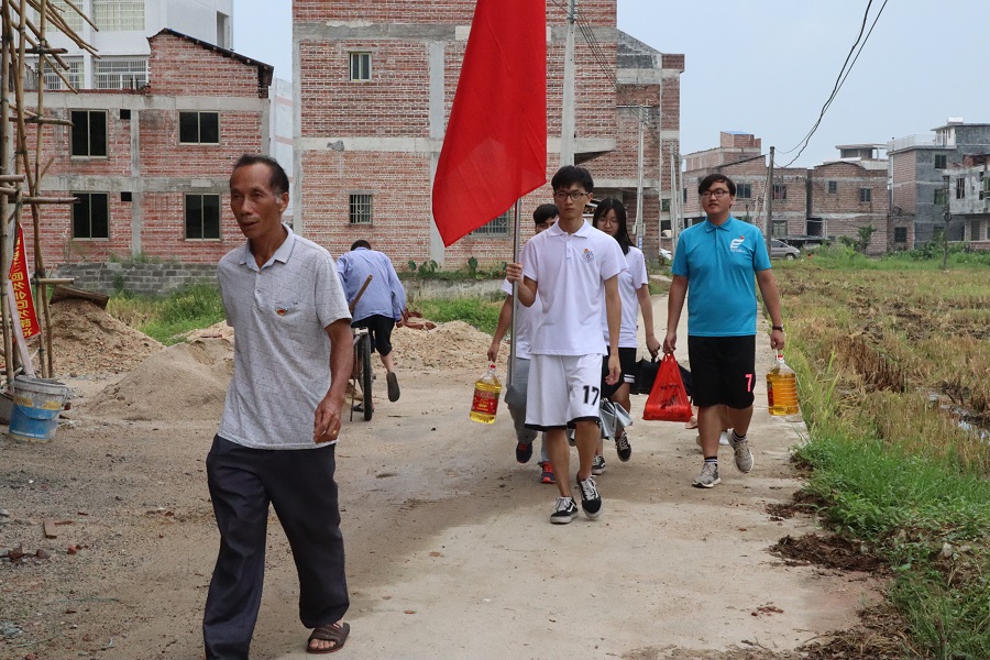 2018年7月23日,服务队指导老师黄丹琪、郑开勋、王俊祺与文秘组成员一同前往肇庆市连麦镇大庙村,在村干部的带领下,探访大庙村两家贫困户。