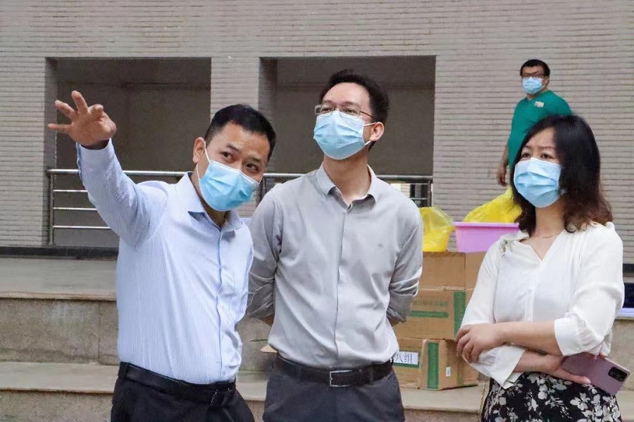 志愿者们在现场主要负责引导同学们有序排队,主动为同学们分成十人一组,并时刻提醒同学们保持一米以上的安全距离,戴好医用口罩,做好个人防护工作,依次验证好同学们健康码和核酸检测码并测量体温。与此同时,医疗工作人员考虑到天气炎热易中暑的问题,加快了检测核酸的效率,让同学们尽早完成全校核酸大筛查工作,离开检测现场。检测过程中,学校领导及相关负责人巡查现场情况,对出现突发意外做准备,为同学们核酸检测的顺利进行增添了一层保障。