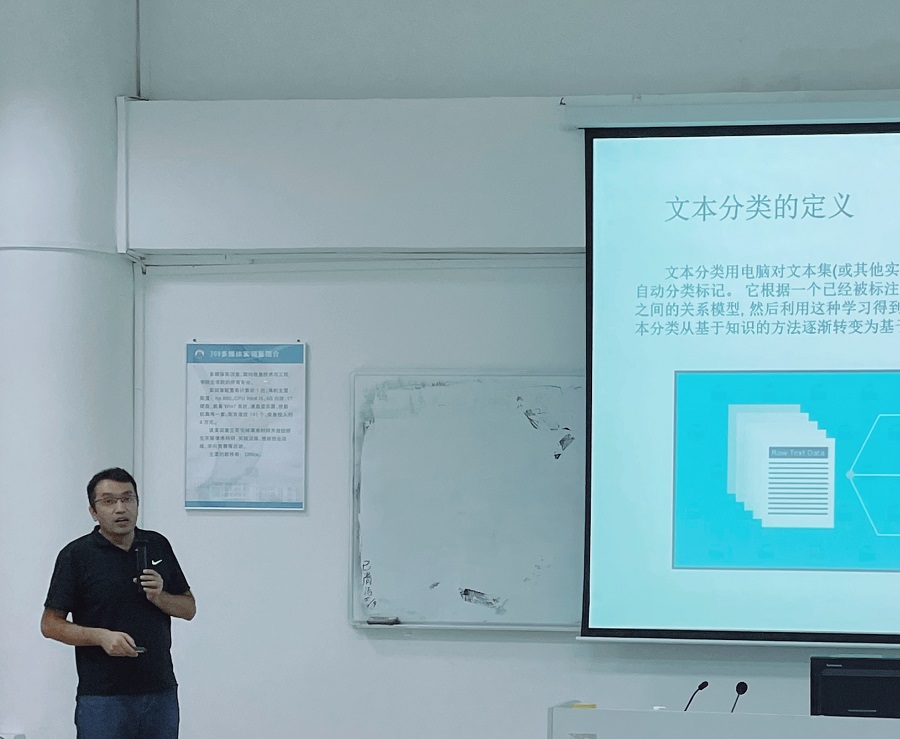 为提高学生对文本挖掘技术的认识和兴趣,太阳成集团tyc33455于6月10日开展“文本分类技术研究”讲座。参加本次活动的有邹兰平老师及各二级学院师生代表们。本次讲座由学生科研助理刘晓锋主持,买买提依明·哈斯木博士主讲。