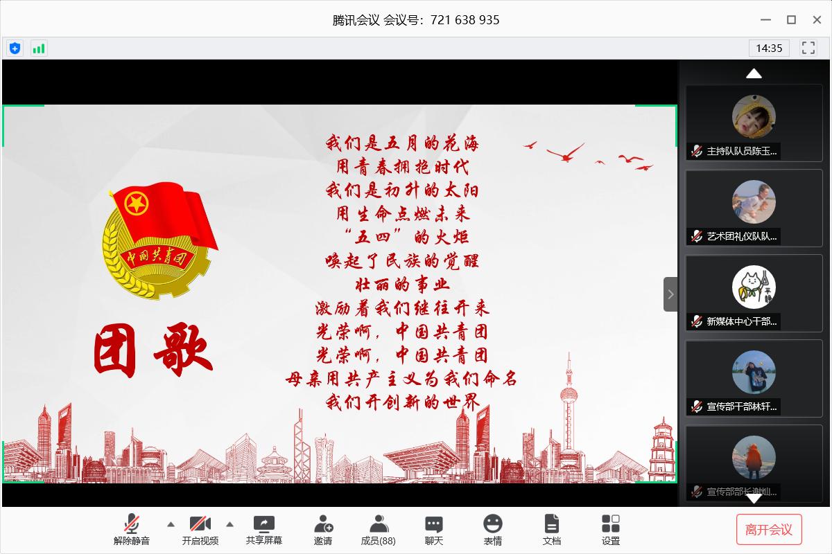 由于疫情导致开学暂时延缓,此次团委优秀部门评比在腾讯会议线上进行。在同学们集体奏唱团歌后,活动拉开了序幕。首先,由各部门代表进行工作总结。选手们主要从自己部门的工作概况、运营理念、耕耘成果和情感建设等作了详细的讲解。在整个活动过程中,答辩环节最为紧张激烈,现场评审团就选手们近期工作的解决方案、部门的发展方向、如何突破创新等方面向选手进行了提问,参赛选手们也做出了精彩的解答,此次会议也让团委变得更加的团结更加优秀。