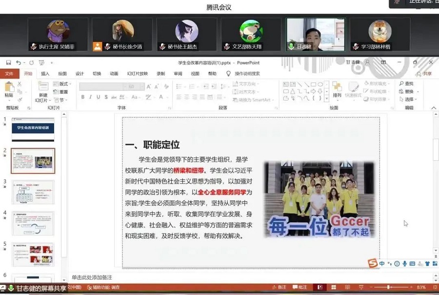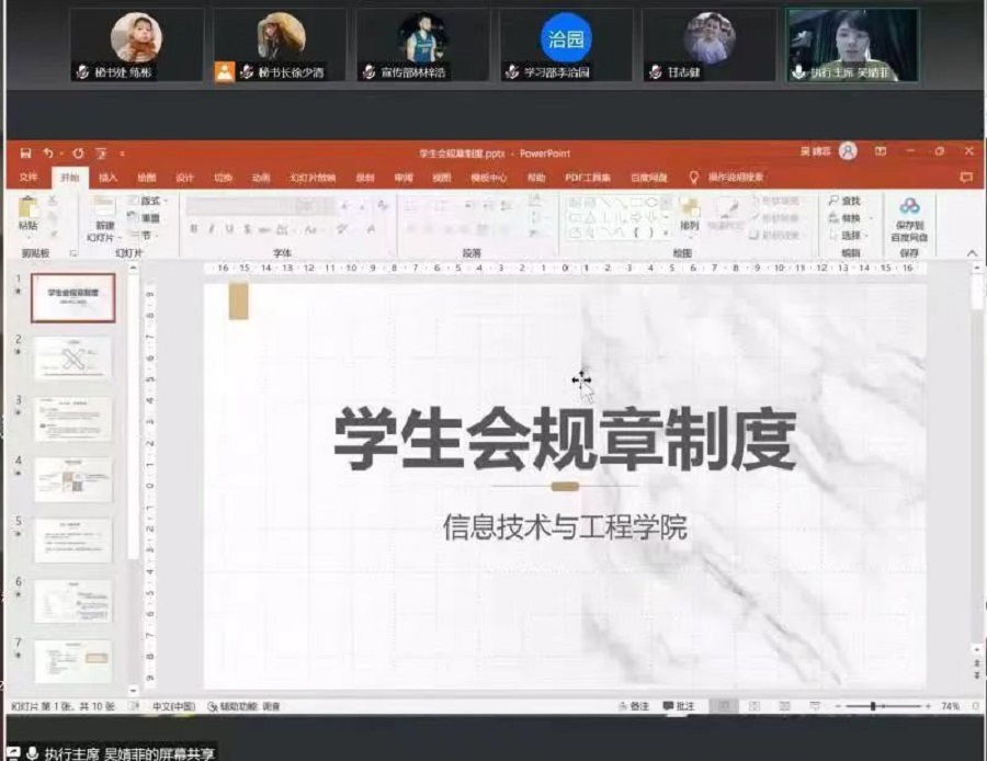 为帮助学生会工作人员了解学生会的主要职能,加强对学生会的认识。11月5日晚,太阳成集团tyc33455学生会在线上召开学生会成员见面会暨10月份系统会议。学院学生会指导老师甘志健,学生会执行主席冯树斌出席本次会议。本次会议由学生会秘书长徐少清主持。
