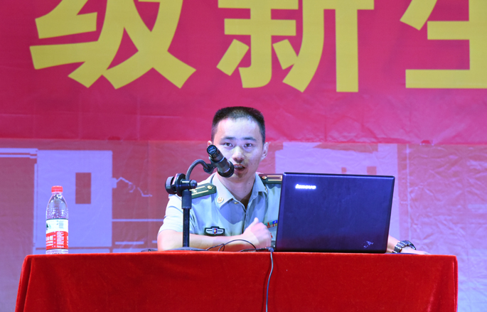 随后,李冲团长以南海仲裁案引出了今晚的国防教育,这一举国皆知的时事热点立即引起了同学们的注意,现场气氛十分热烈,新生热情地与李团长互动。李团长引用历史事实为新生介绍中国国防的发展历程,其风趣幽默的解说引起了新生阵阵笑声和掌声,同学们都听得聚精会神。
