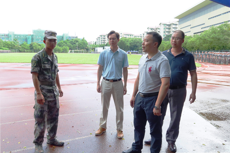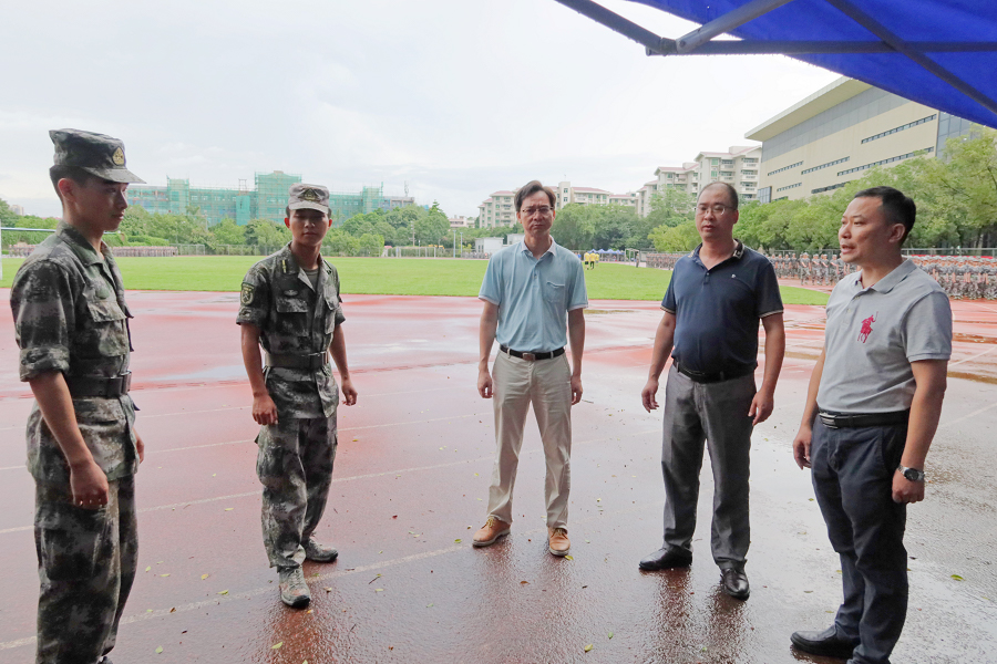为了与我院教官和学生深入交流,激励学生“长风破浪会有时,直挂云帆济沧海”之精神,今日,学校党委委员、学生工作部部长何柏略,广州商学院团委书记李锦堂和学生工作部许忠旺老师莅临我院新生军训场地,对现场的军训工作进行指导点评。