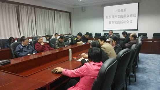 为深入贯彻“十八大”和党的十八届三中全会精神,按照学院深入开展党的群众路线教育实践活动的总体部署,计算机系于3月6日下午,组织召开计算机系全系教职工学习党的群众路线教育实践活动会议,出席本次会议的有:计算机系主任陶培基、计算机系副主任吴广裕、计算机系党总支书记钟远辉,计算机系全体党员等。会议由钟远辉主持。